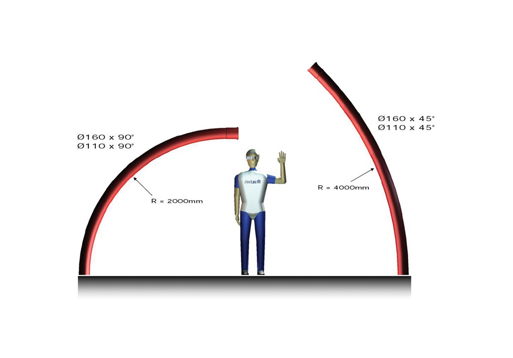 PVC bend leveres som standard, med radius 60 cm, 2 m og 4 m.